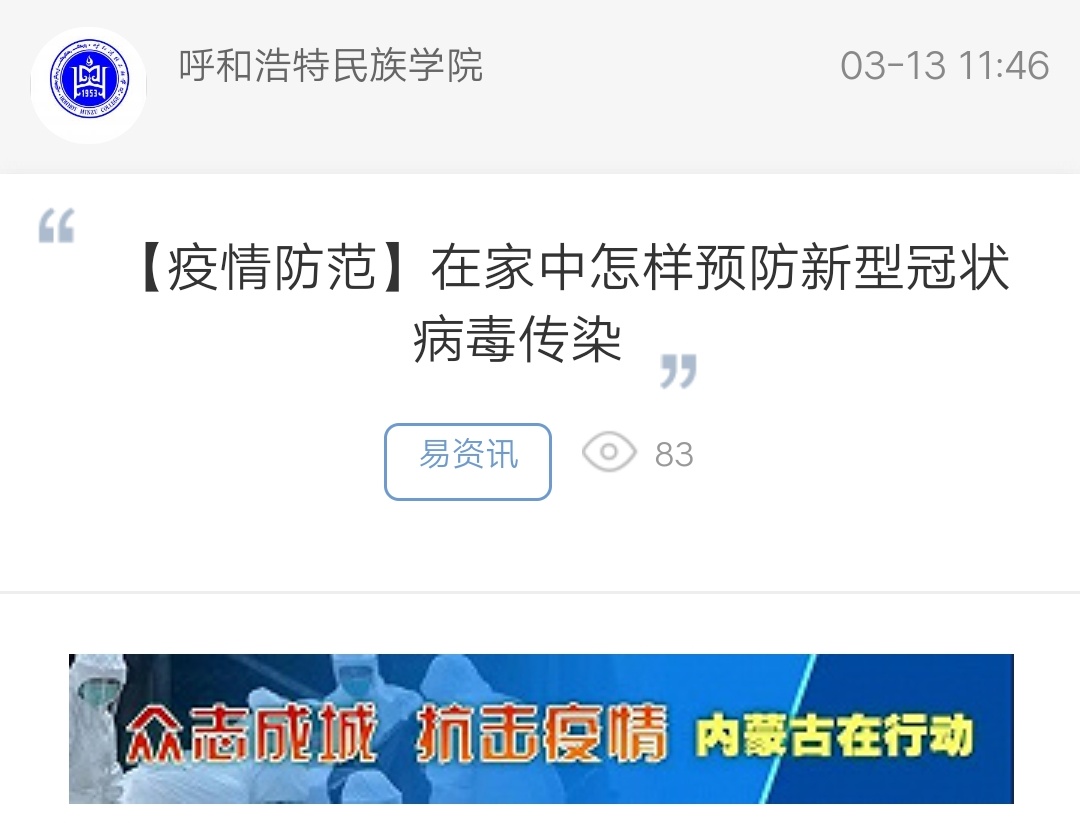 下一条:一堂“思政大课” 坚定呼和民院师生战”疫“信心