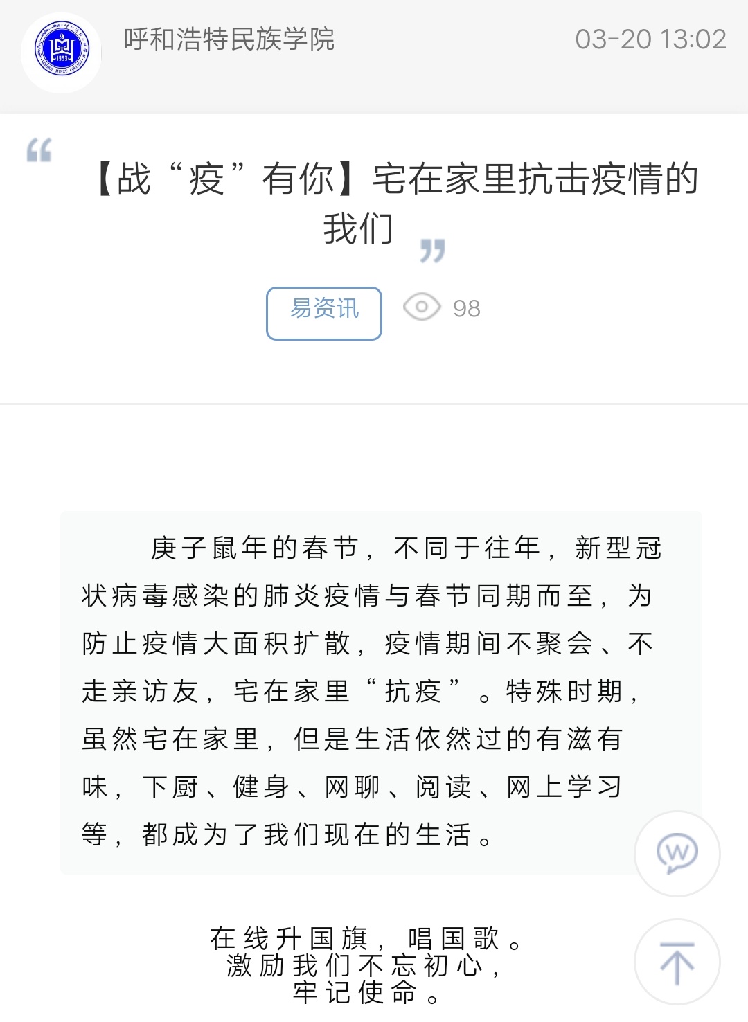 上一条:【战“疫”有你】家乡的春天