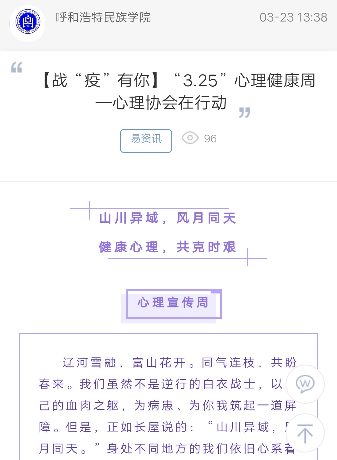 【战“疫”有你】“3.25”心理健康周—心理协会在行动