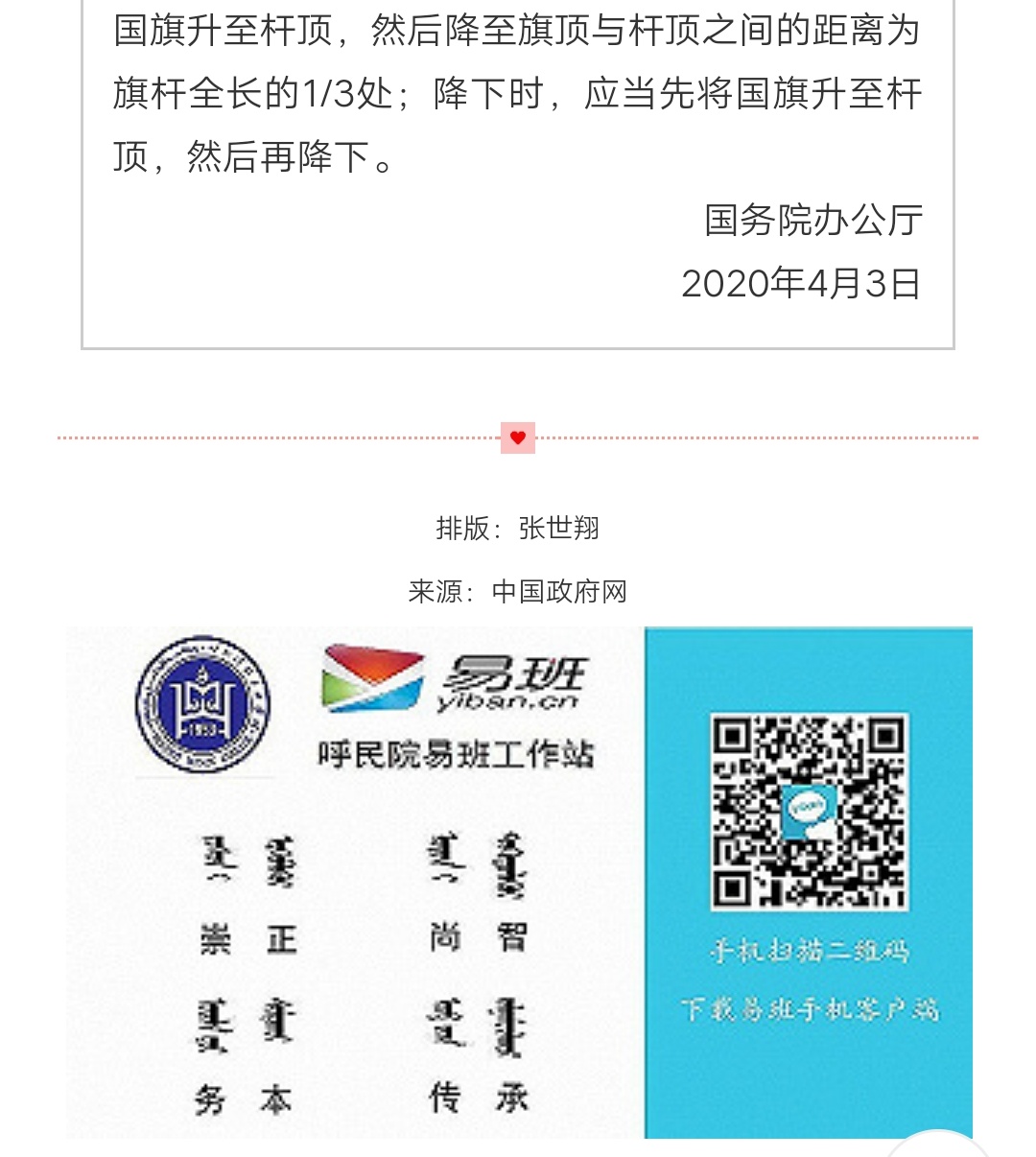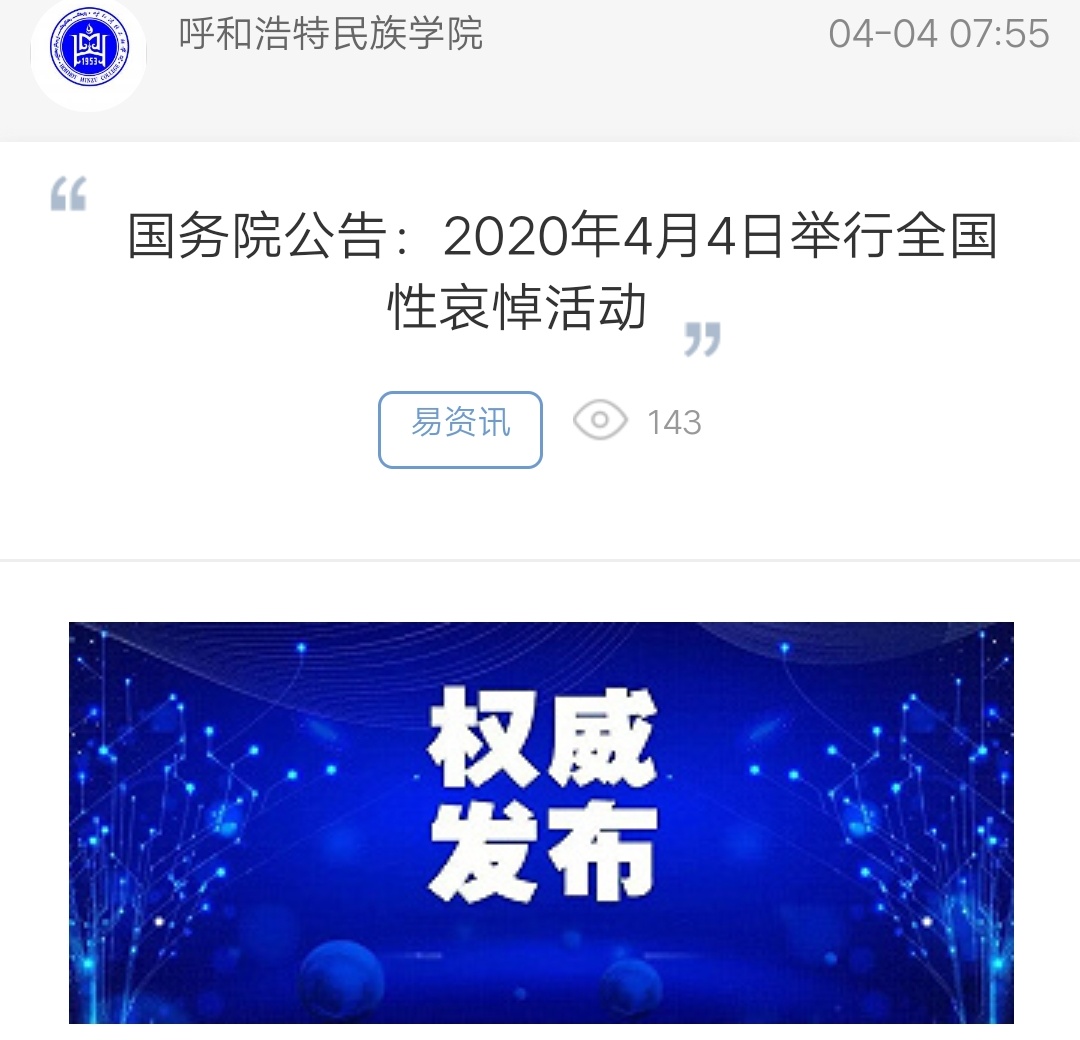 国务院公告:2020年4月4日举行全国性哀悼活动