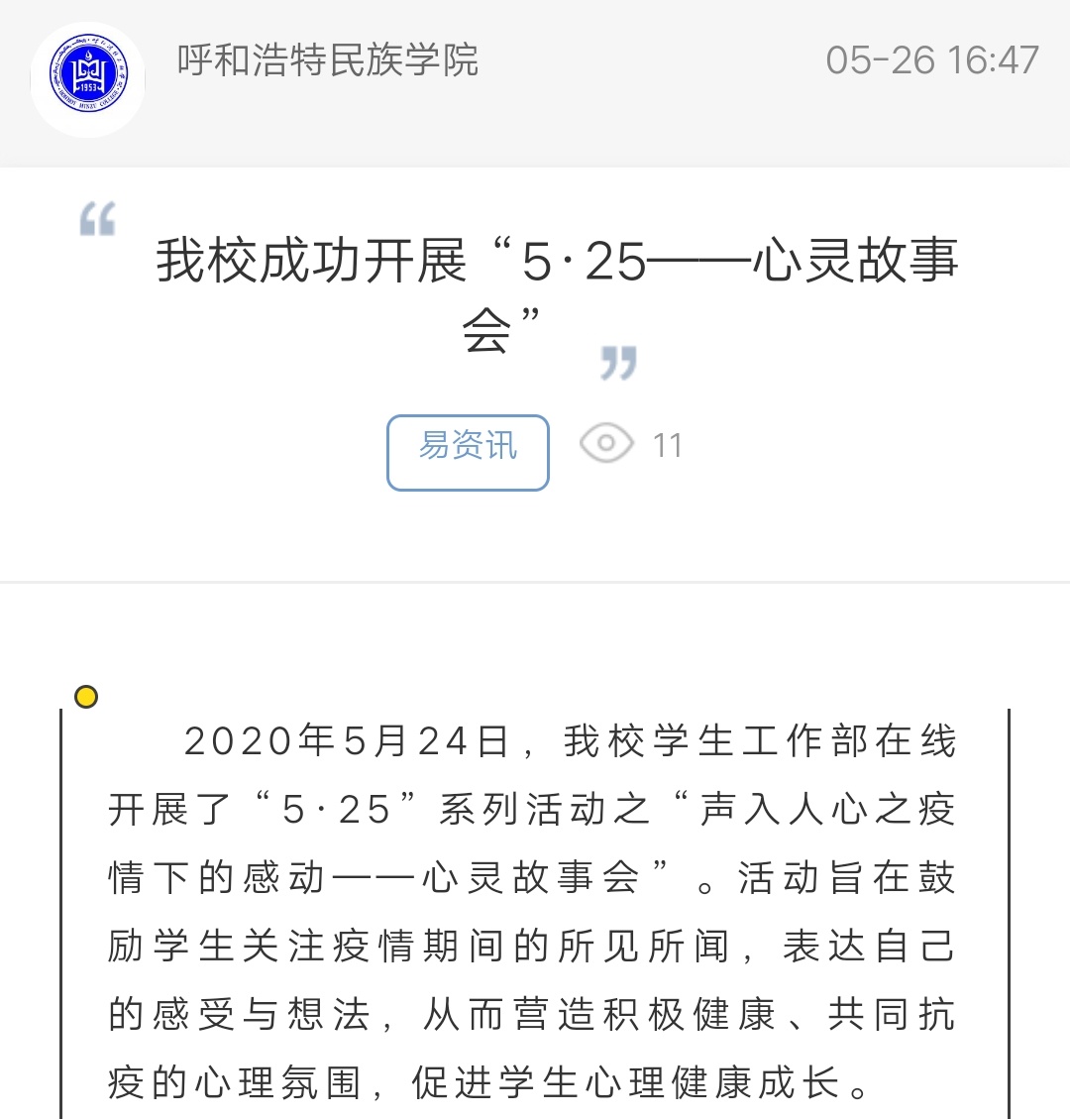 beat365官网成功开展“5·25——心灵故事会”