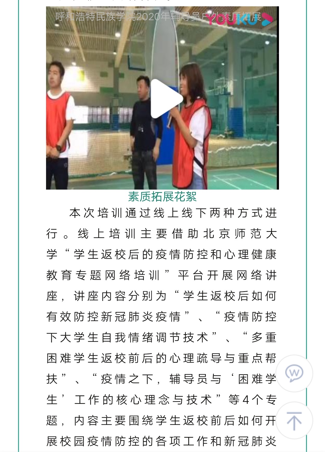 beat365官网举办“‘云’中辅导,‘疫’中成长”主题辅导员专题培训