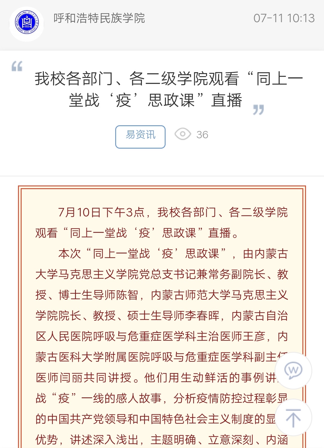 beat365官网各部门、各二级学院观看“同上一堂战‘疫’思政课”直播