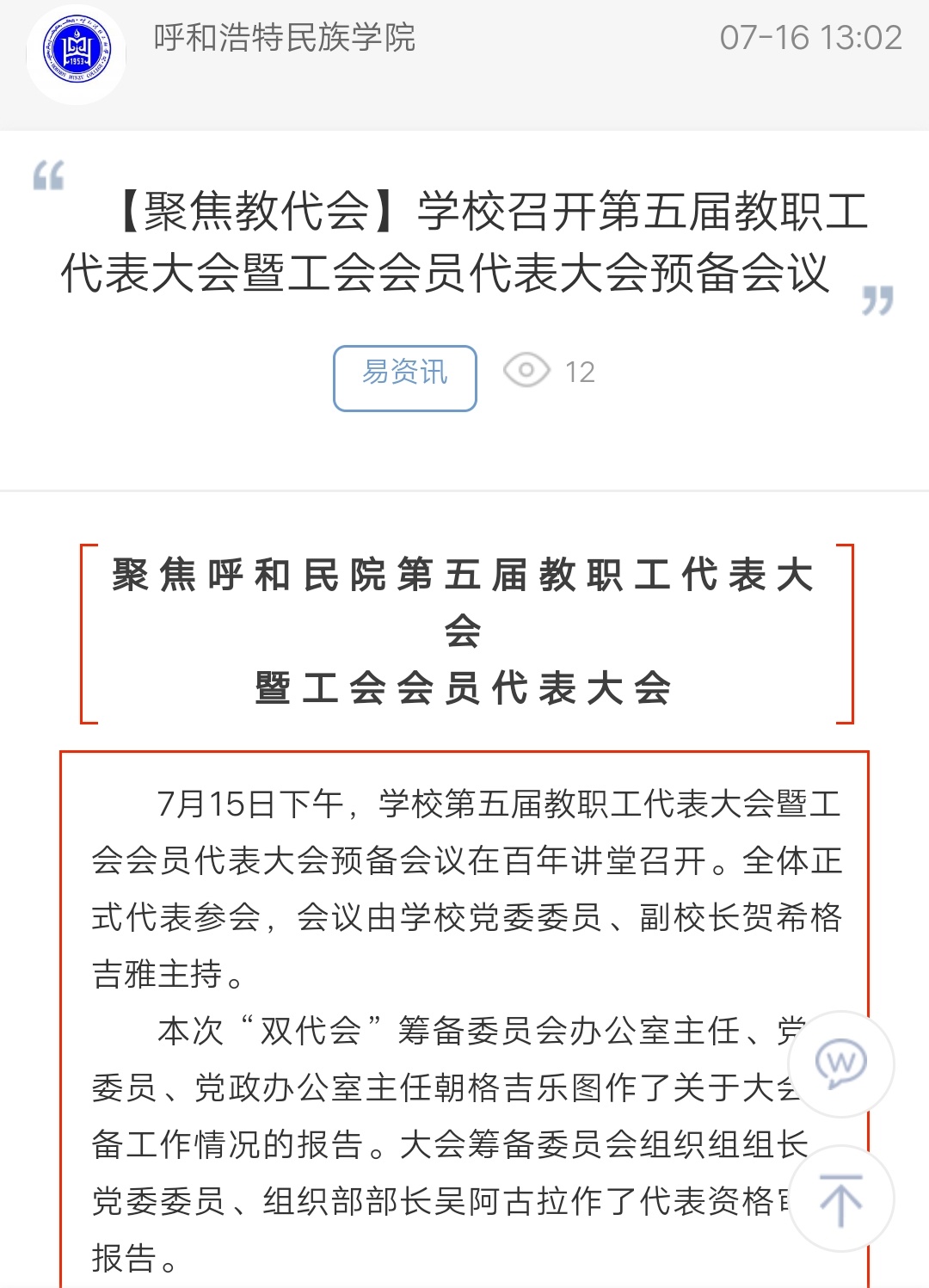 【聚焦教代会】学校召开第五届教职工代表大会暨工会会员代表大会预备会议