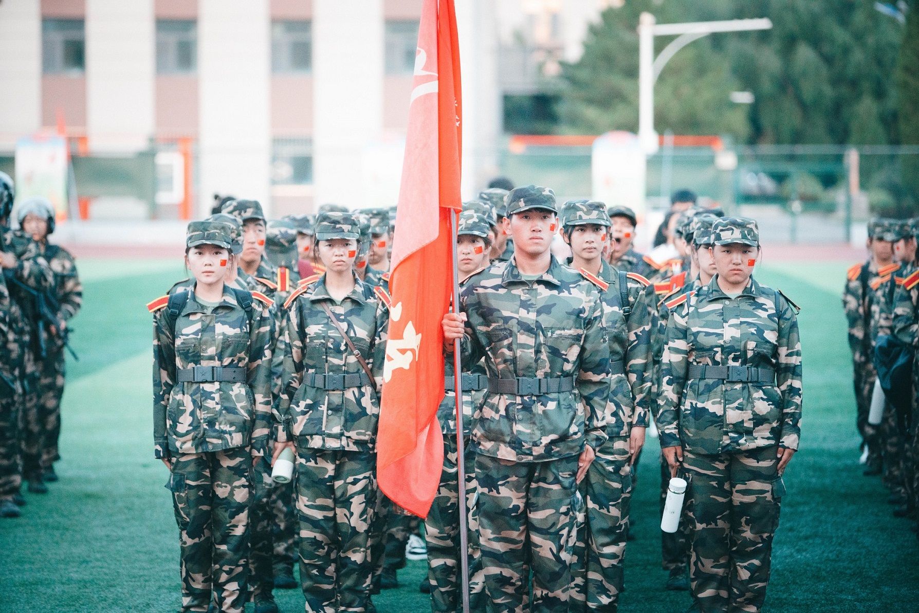 为加强同学们的国防意识,活动中安排了野外演练项目,如持枪战术表演,采取徒步行军的方式,途中设置快速奔袭、防空袭伪装、围绕组织指挥、防暴处突、卫勤保障、战地野炊等进行实兵实装演练。在教官的演示及口令下,同学们热情高涨,仿佛置身战场,动作干净利落,迅速有力。沉浸式实战化的国防教育,使同学们更加坚定了“愿以吾辈之青春,捍卫盛世之中华”的理想信念。