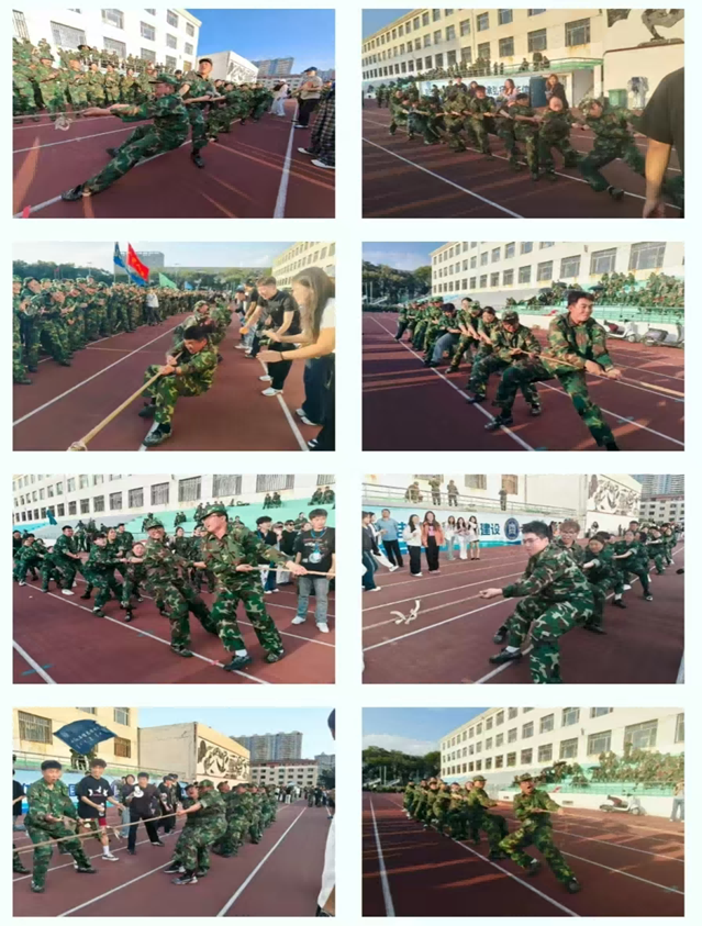 9月12日,南操场举行新生拔河比赛,17个学院代表队经多轮角逐,商学院勇夺冠军,蒙古学学院、管理学院分获亚季军。比赛展现了新生“锐意进取、协同攻坚”的团队精神,成为军训成果的生动检验。