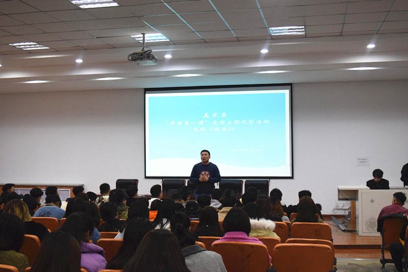为了深入贯彻落实习近平新时代中国特色社会主义思想和党的十九大精神,加强爱国主义教育和民族团结教育,让学生以良好的精神风貌进入新学期,以实际行动迎接新中国成立70周年。2月24日19时40分,美术系组织学生在美术楼四楼阶梯教室集体观看爱国主题电影《战狼2》。