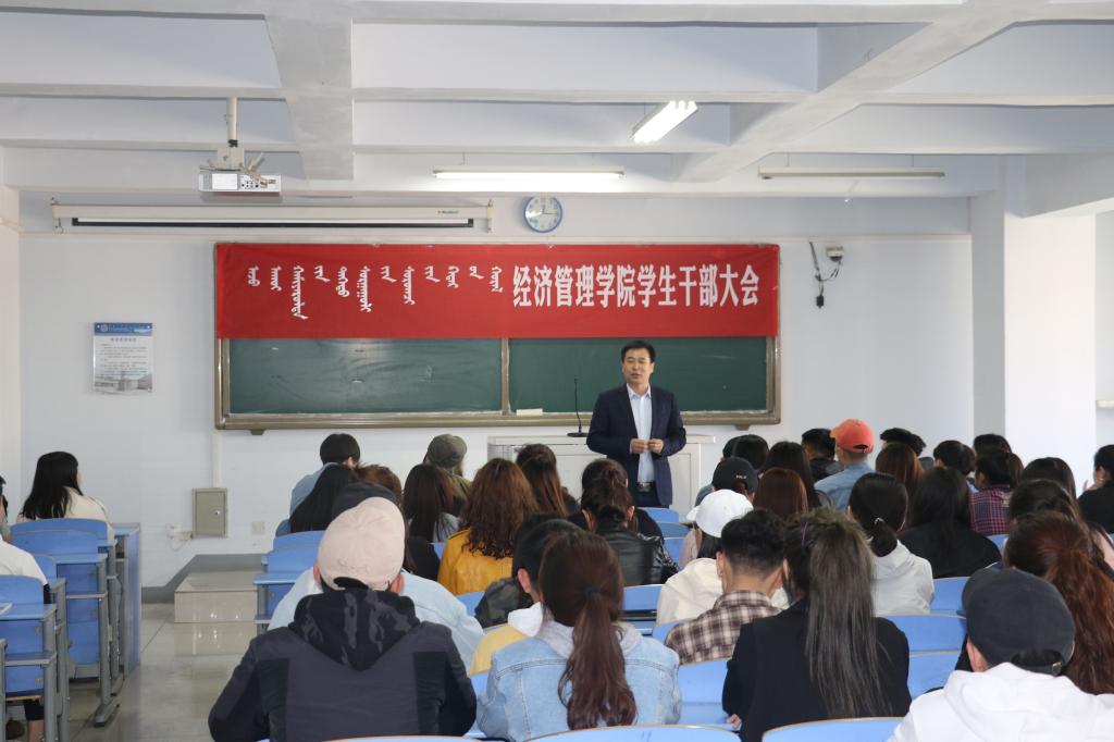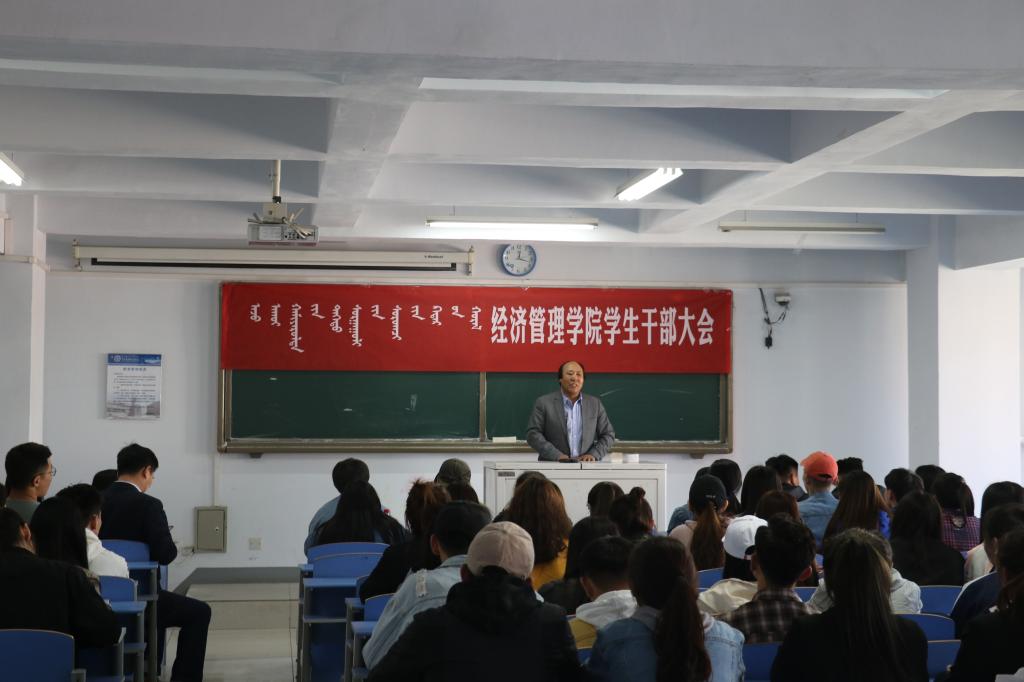 5月13日,经济管理学院在都林楼206教室,召开学生干部大会。会议由党总支副书记乌日根巴雅尔主持,经济管理学院100多名师生参加。