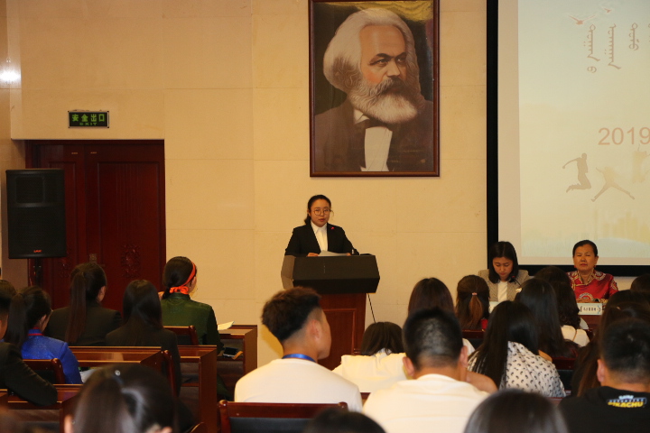 会上,额尔敦其其格副院长为大家公布2019届毕业生名单。教师代表董鹏飞博士作为毕业班班主任表达了对同学们诚恳的建议和衷心的祝福,希望同学们能够学以致用,尽快适应社会,提高能力,完善自我。考研学生代表张锦瑶同学分享考研经历,鼓励学弟学妹们找准人生坐标,努力进取。毕业生代表孟凌杰同学做代表发言,深切表达了对母校以及恩师们的感激之情,祝愿母校学术百花齐放,教书育人桃李芬芳,祝福学弟学妹们奋勇前行乘风破浪。在校生代表阿丽雅同学表达了对学长学姐们内心的感激和最真挚的祝福。