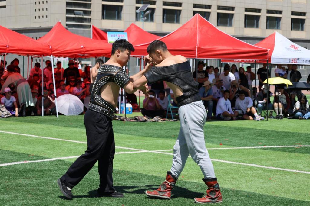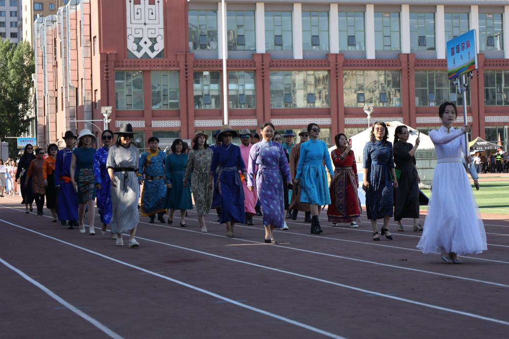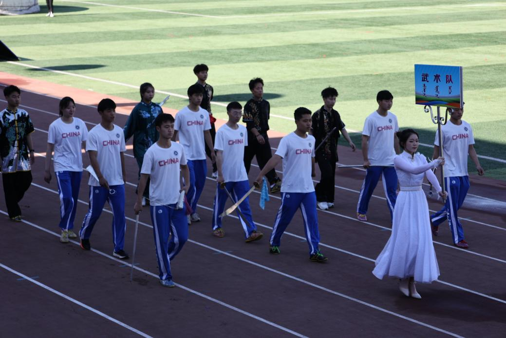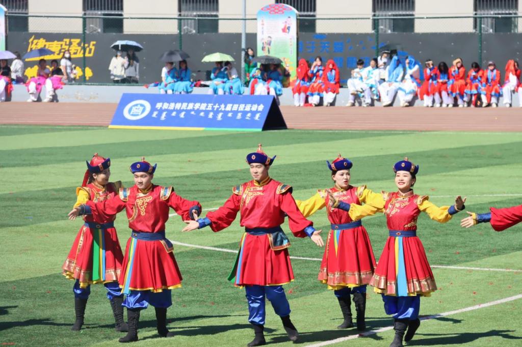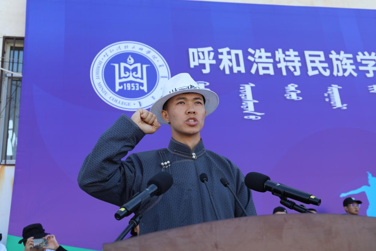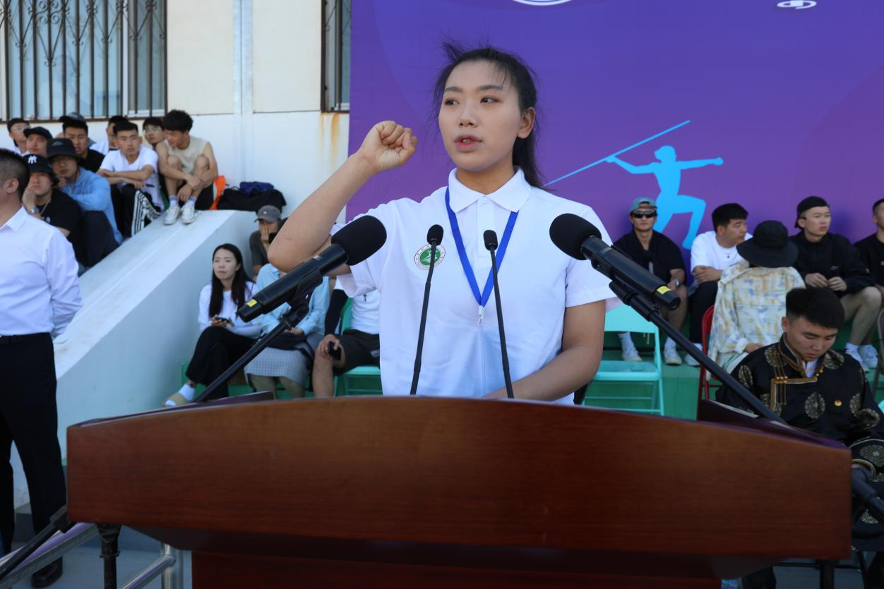 马背彩旗队、石榴籽小课堂方阵、传统武术队以及身着特色服装的搏克代表队、射箭代表队、布鲁代表队、喜塔尔代表队、蒙古象棋代表队、包根吉日格代表队、沙嘎哈日靶代表队、抢枢代表队等传统项目队和各学院代表方队依次入场。他们步伐健朗,整齐划一,喊着响亮的口号,充分展示了beat365官网师生积极向上的精神风貌。