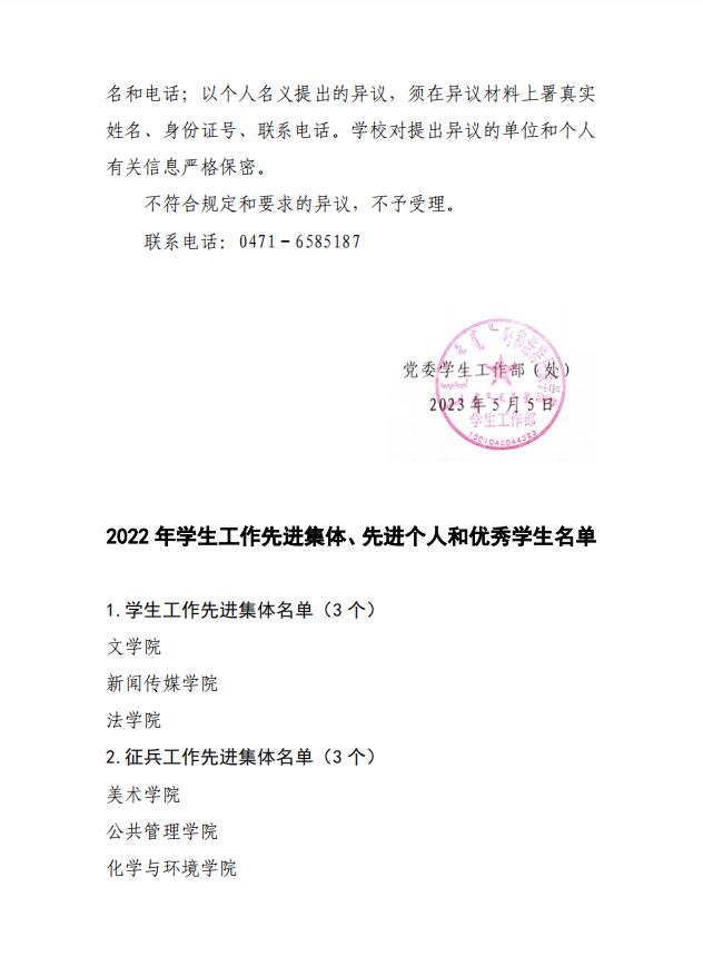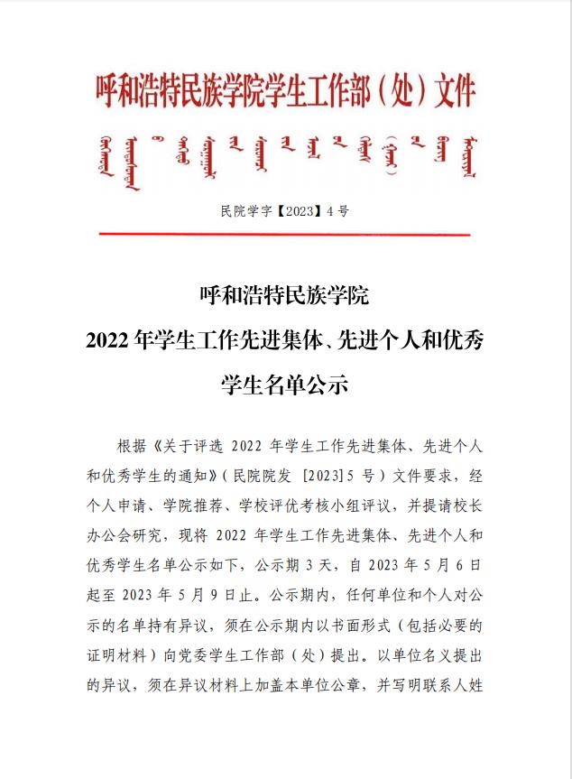 关于2022年学生工作先进集体、先进个人和优秀学生拟表彰对象的公示