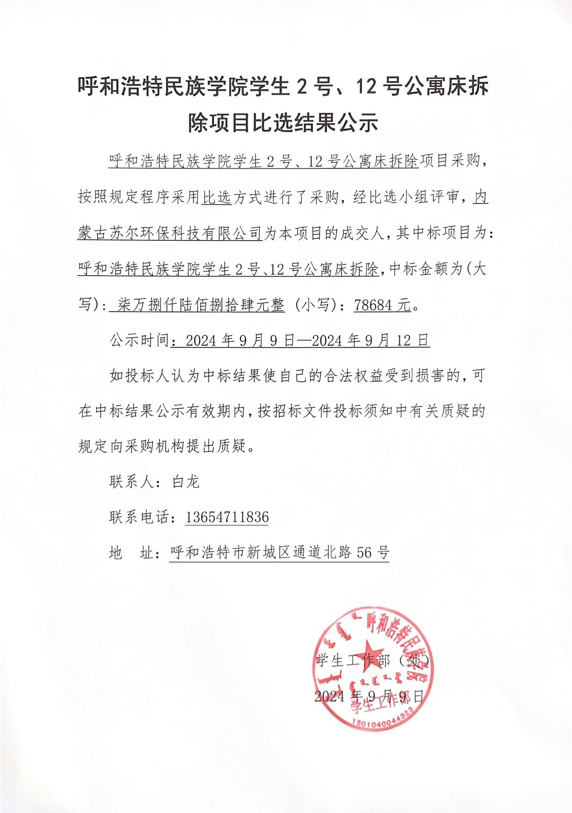 beat365英国官方网站2号、12号公寓床拆除项目比选结果公示