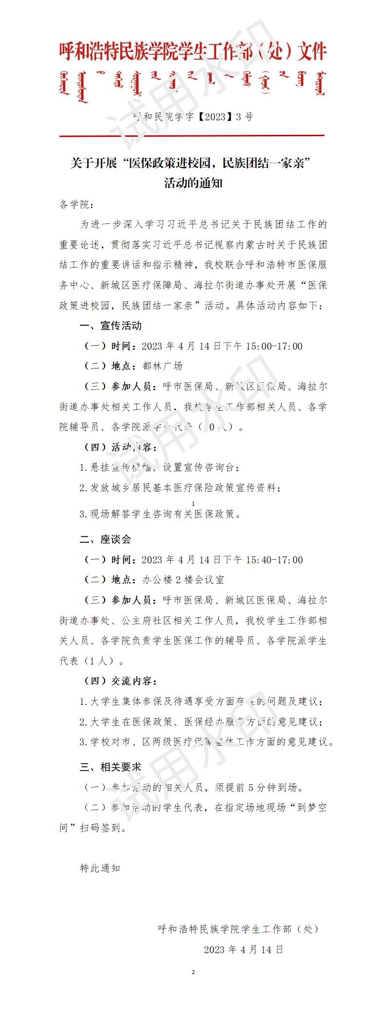 关于开展“医保政策进校园,民族团结一家亲”活动的通知