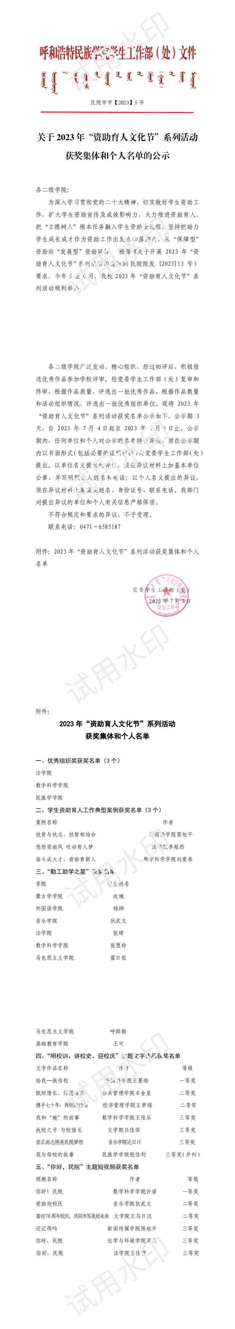 关于2023年“资助育人文化节”系列活动获奖名单的公示