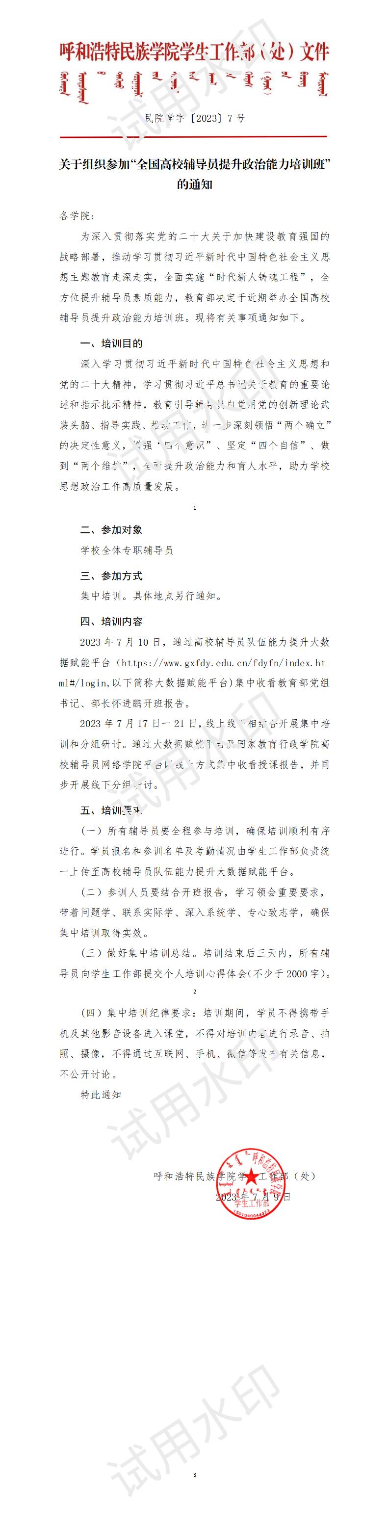 关于组织参加“全国高校辅导员提升政治能力培训班”的通知