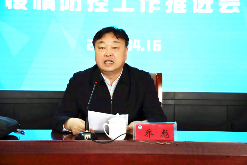 beat365官网于4月16日在综合楼12楼会议室召开疫情防控工作推进会。会议由乔彪校长主持。党委委员、纪委书记、监察专员王冬梅,党委委员、副校长高喜天出席会议,各部门负责人,各二级学院党总支书记、院长,疫情防控工作领导小组全体成员参加会议。