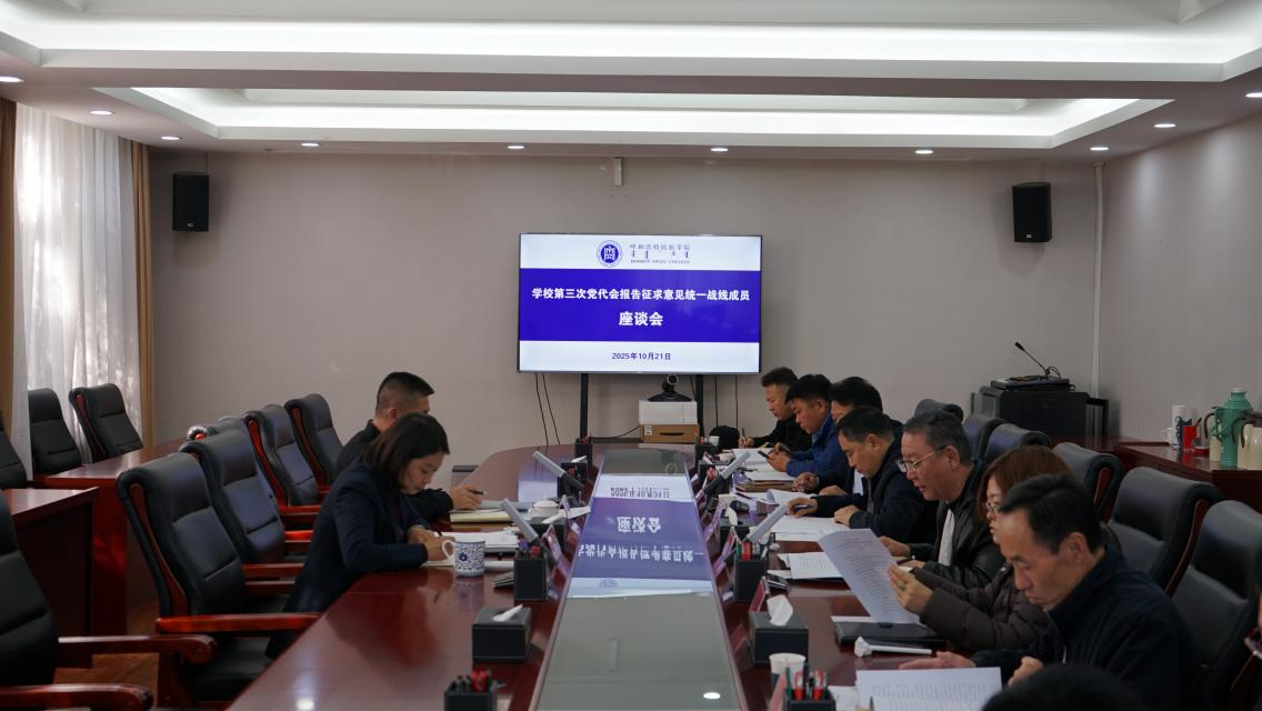10月21日,学校在综合楼三楼会议室召开统一战线成员座谈会,征求第三次党代会工作报告意见建议。校党委副书记格根哈斯主持会议。