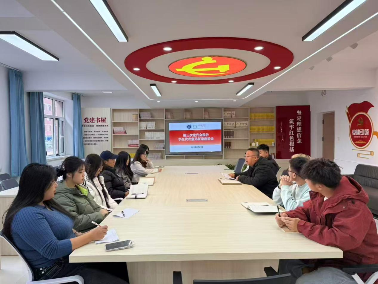 10月23日,学校在三号学生公寓党团活动室召开学生代表座谈会,征求第三次党代会工作报告意见建议。学生工作部(处)部长常喜主持会议。