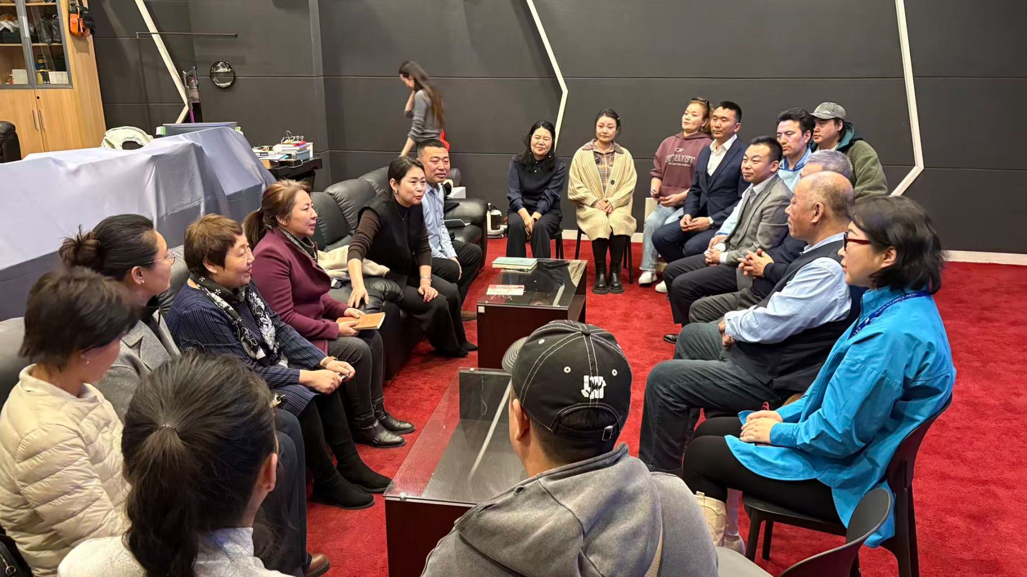 在座谈交流环节,内蒙古民族语电影译制中心党支部书记、总经理齐双宝致欢迎词并全面介绍了译制中心的发展概况、业务范围与人才需求。格根哈斯表示,希望以此次交流为契机,加强校企双方在人才培养、实践教学、实习就业等方面的深度合作。双方还围绕专业对接、资源共享、协同育人等内容开展深入交流,进一步凝聚合作共识,为后续校企务实合作奠定了良好基础。