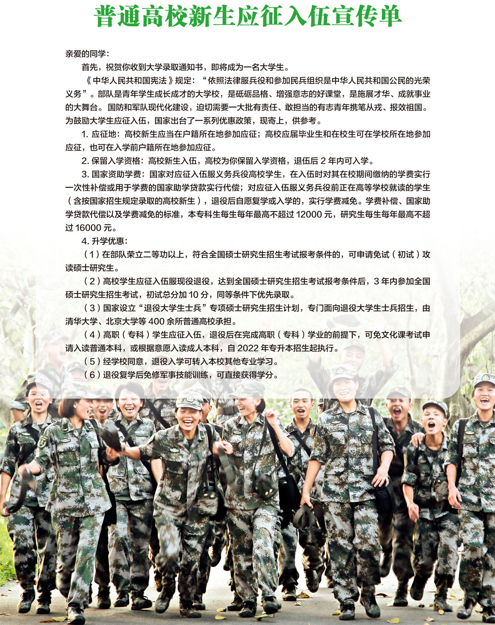 普通高校新生应征入伍宣传单