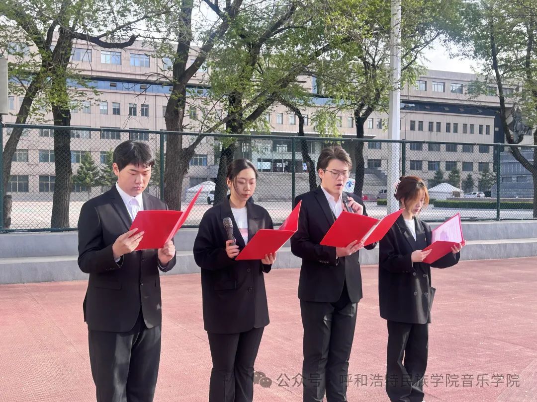 音乐学院4名学生代表作了国旗下的演讲,号召青年学子“感党恩、听党话、跟党走”,要以踔厉奋发的昂扬状态,不负青春、不负韶华,在奋斗中扛起新时代大学生的责任与担当,为完成好自治区“两件大事”贡献自己的智慧和力量。