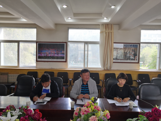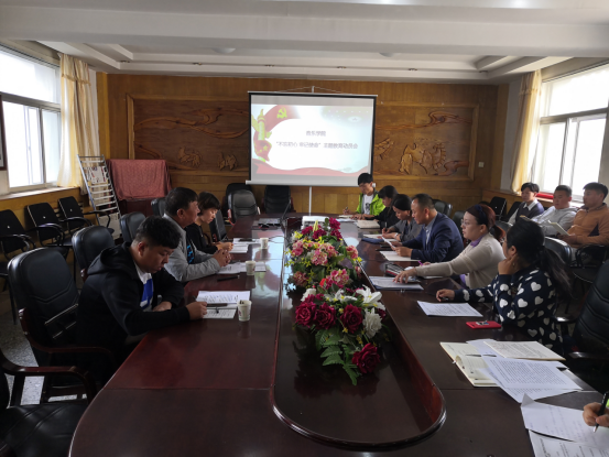 为深入学习贯彻习近平总书记关于“不忘初心、牢记使命”主题教育一系列重要指示精神,深入落实自治区党委和校党委“不忘初心、牢记使命”主题教育动员大会精神,我院于9月19日16:00时在音乐楼二楼会议室召开“不忘初心、牢记使命”主题教育动员大会。学校“不忘初心、牢记使命”主题教育第二指导组组长胡日查组长一行三人到会指导。党总支书记格日乐、院长齐占柱、副院长萨日胡、教工党员、学生党员共20余人参加了本次会议。会议由党总支副书记、院长齐占柱主持。