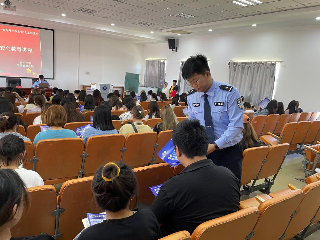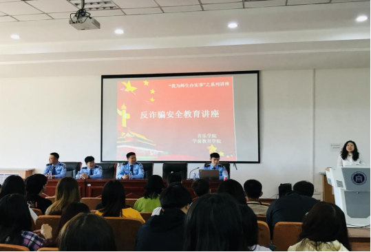 根据学校党史学习教育工作决策部署,进一步深化落实“我为师生办实事”实践活动,全面加强学生安全管理教育工作,音乐学院、学前教育学院于6月3日下午邀请到了呼和浩特市公安局反诈中心张巍、李鑫警官一行来beat365官网开展反诈骗安全教育讲座。