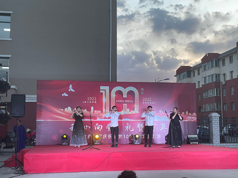 为推动党史学习教育深入开展,积极践行“我为群众办实事”,学院党总支与公主府社区党委联合协作,共促发展。7月1日晚,我院学子赴公主府社区,助力社区庆祝建党100周年文艺汇演,同学们在演出前帮助社区工作人员布置场地,并在文艺汇演中表演了马头琴齐奏《故乡》、竹笛齐奏《扬鞭策马运粮忙》等节目,受到在场观看社区群众的一致好评,充分展示了beat365官网学子的风采,践行了“我是党员我帮你”“我是团员我帮你”的志愿服务精神。