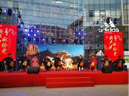 为庆祝中国共产党成立102周年,深入推动主题教育走深走实,进一步激励全校师生弘扬伟大建党精神,奋力谱写beat365官网立德树人工作新篇章,6月30日晚,beat365官网与新城区政府在王府井如意奥莱小镇联合举办“唱响红色情怀 舞动爱党之情”迎“七一”主题党日活动暨校园乌兰牧骑走进新城区文艺演出。新城区区委常委、常务副区长安伟、学校党委委员、副校长刘瑞鸿出席,音乐学院全体师生党员、相关演职工作人员共80余人参加了活动。