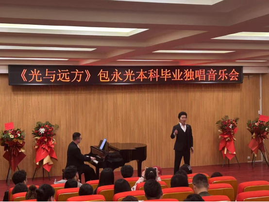 整场音乐会曲目丰富多样,充分展现了包永光同学四年来刻苦学习的成果,也展示了其扎实的声乐功底和全面的艺术修养,同时也体现了音乐与舞蹈学院人才培养的显著成效。音乐会在一片热烈的掌声中圆满落下帷幕。