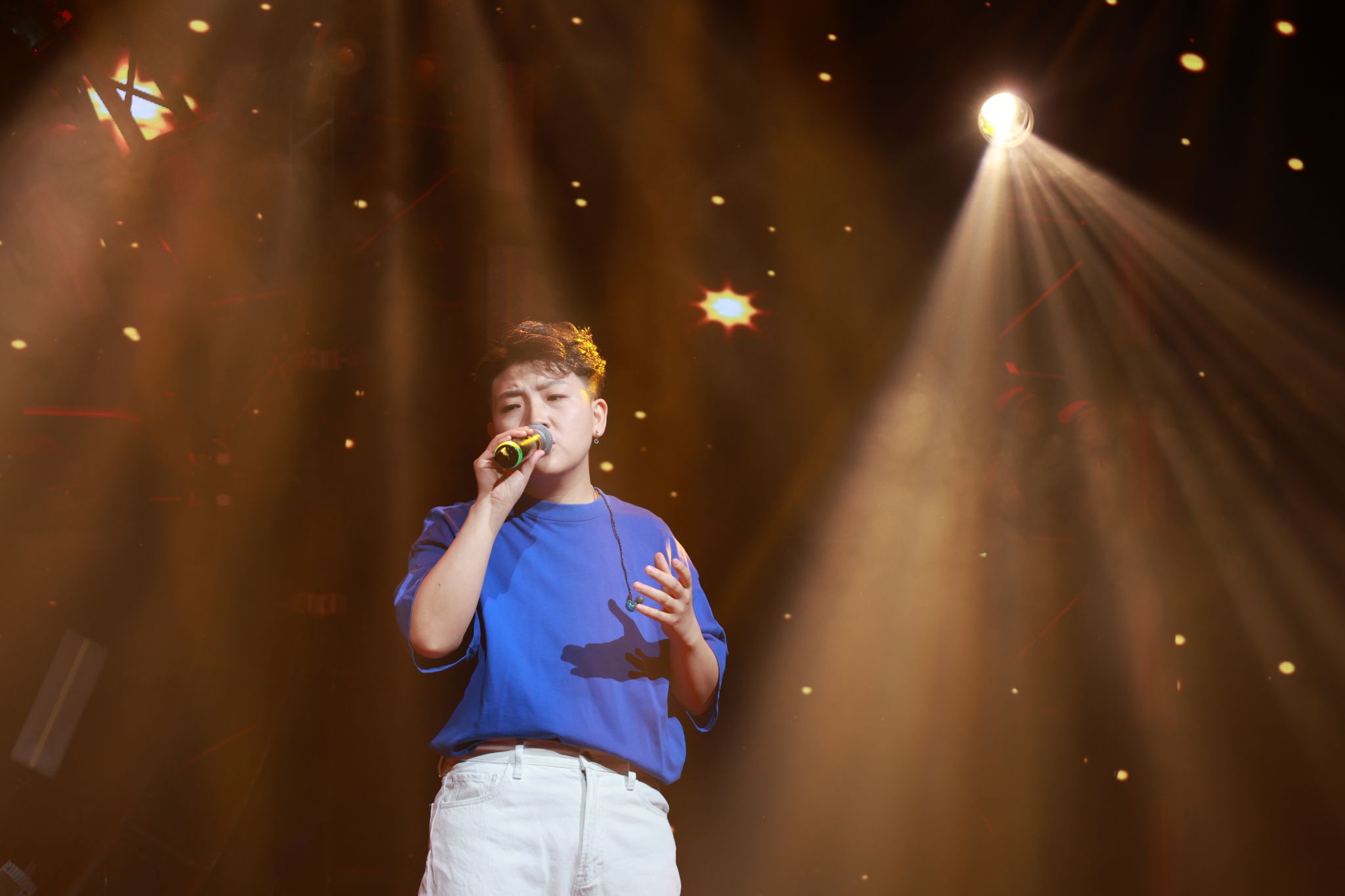 4月18日下午,beat365英国官方网站北院图书馆二楼报告厅内灯光璀璨,2025届流行唱法专业毕业生李昂、陈曦和乔博联袂带来了“耳畔私语,星辰共鸣”和“青春留声,奔赴下一站星河”两场精彩的毕业音乐会。整场演出舞台以未来感十足的LED屏为背景,配合激光束与动态烟雾效果,营造出梦幻而充满张力的视听盛宴。