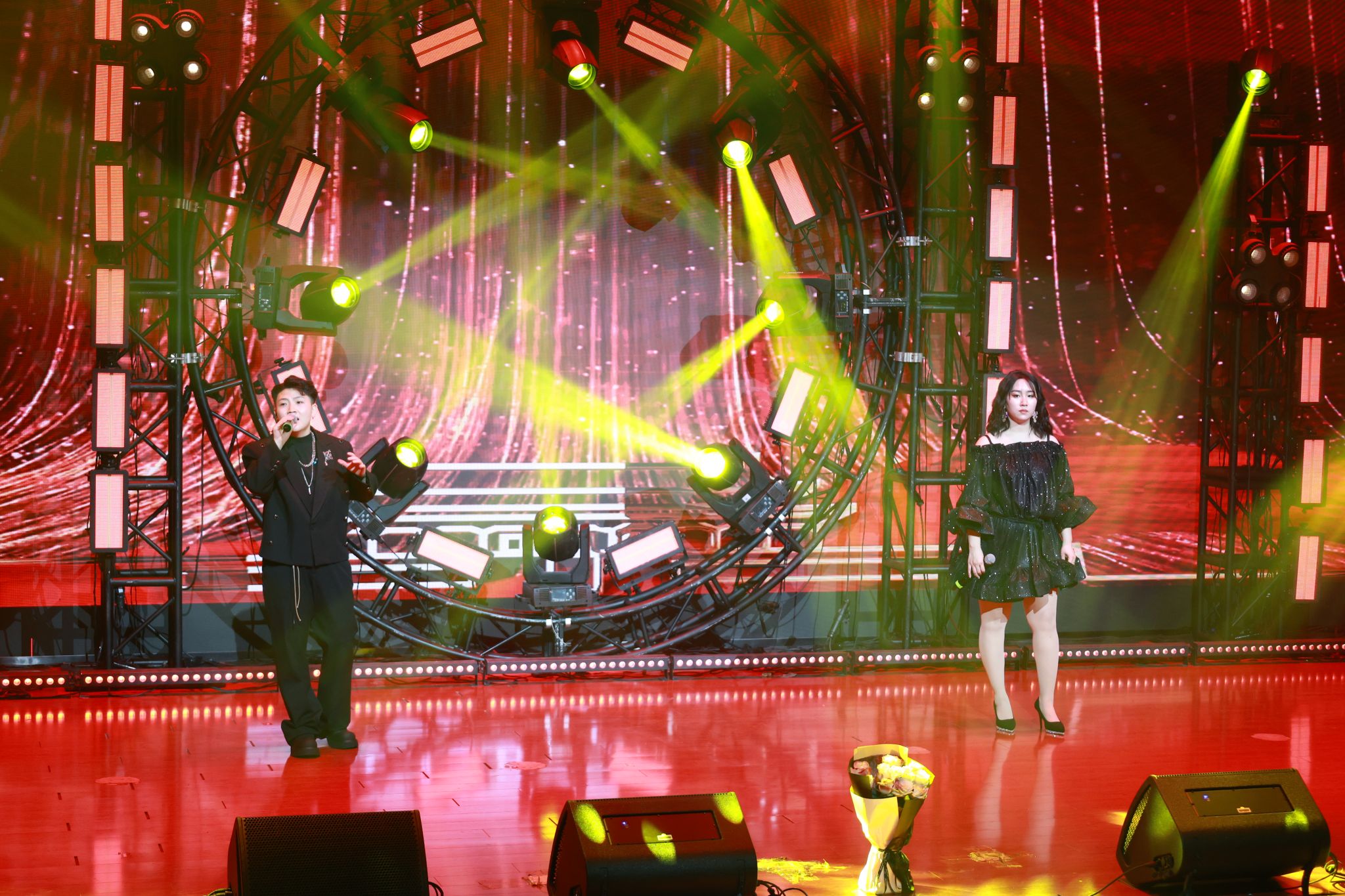 音乐会现场,毕业生们用动人的歌声诠释了不同风格的流行音乐作品。李昂深情演绎了《伏笔》《阴天》等抒情歌曲,报告厅化作璀璨的音乐星河,其富有感染力的嗓音赢得阵阵掌声;陈曦则以充满爆发力的《饿狼传说》点燃全场气氛,舞台瞬间迸发红色光束与金色碎闪;而演唱《敕勒歌》时舞台背景呈现出一望无际的茫茫草原,配合她极具张力的嗓音,演绎的大气又富有现代感。乔博在演唱《Forever young》时,舞台背景切换为充满未来感的机械齿轮元素,配合跳动的电子光束,完美诠释了歌曲永葆青春的现代主题。特别值得一提的是,三位毕业生与助演嘉宾王旭共同演绎的《这就是爱》将现场气氛推向高潮,而终场曲目《我爱你中国》更以饱满的爱国情怀为音乐会画上圆满句号。