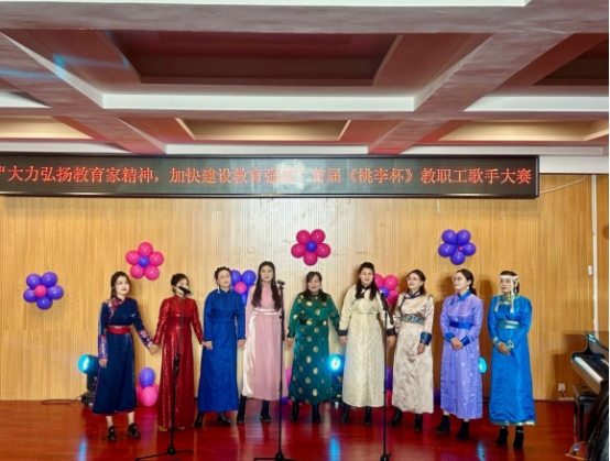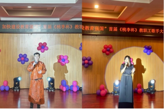 为庆祝第40个教师节,展现beat365官网教职工才艺风采,持续唱响时代主旋律,9月3日晚,由学校工会主办,音乐与舞蹈学院承办的“大力弘扬教育家风采,加快建设教育强国”首届《桃李杯》教职工歌手大赛在音乐楼多功能厅拉开帷幕。比赛邀请音乐与舞蹈学院包秀兰副教授、包金花副教授、青年讲师格日乐巴图担任评委。工会、各二级学院相关负责人、参赛教师、学生代表近100人观看了比赛。