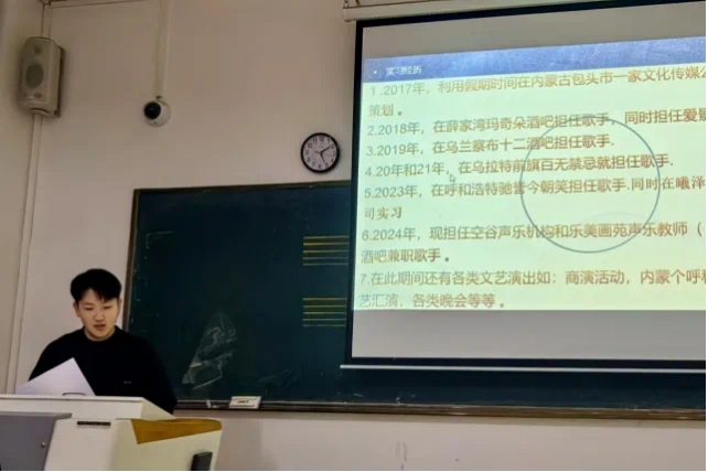 比赛中,选手们充分利用音乐与舞蹈的专业特色,通过PPT、视频、现场表演等多种形式,生动展现了他们对音乐教育的热爱和对艺术传承的执着。同时,详细阐述了职业目标、发展路径和实施计划,还分享了个人成长经历和对未来的美好憧憬,使得整场比赛既专业又充满情感色彩。