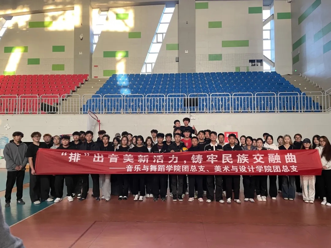 10月26日,音乐与舞蹈学院与美术与设计学院开展了一场以“排出音美新活力,铸牢民族交融曲”为主题的友谊赛。当“韵律”遇上“构图”,赛场秒变艺术现场!音乐与舞蹈学院、美术学院排球赛此刻开战,每一次传球都是创意,每一次扣杀都是激情。