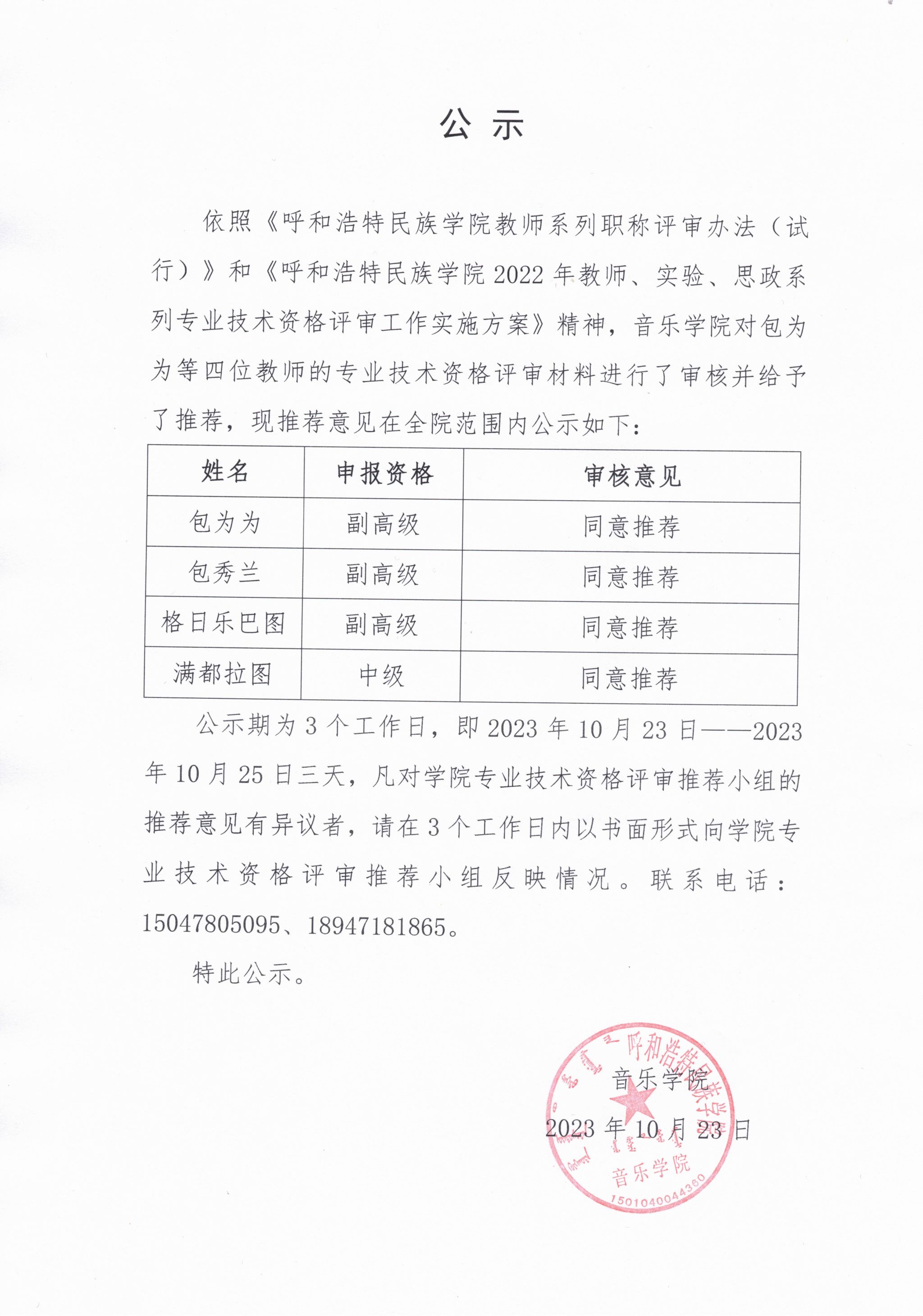 2023年职称评审公示
