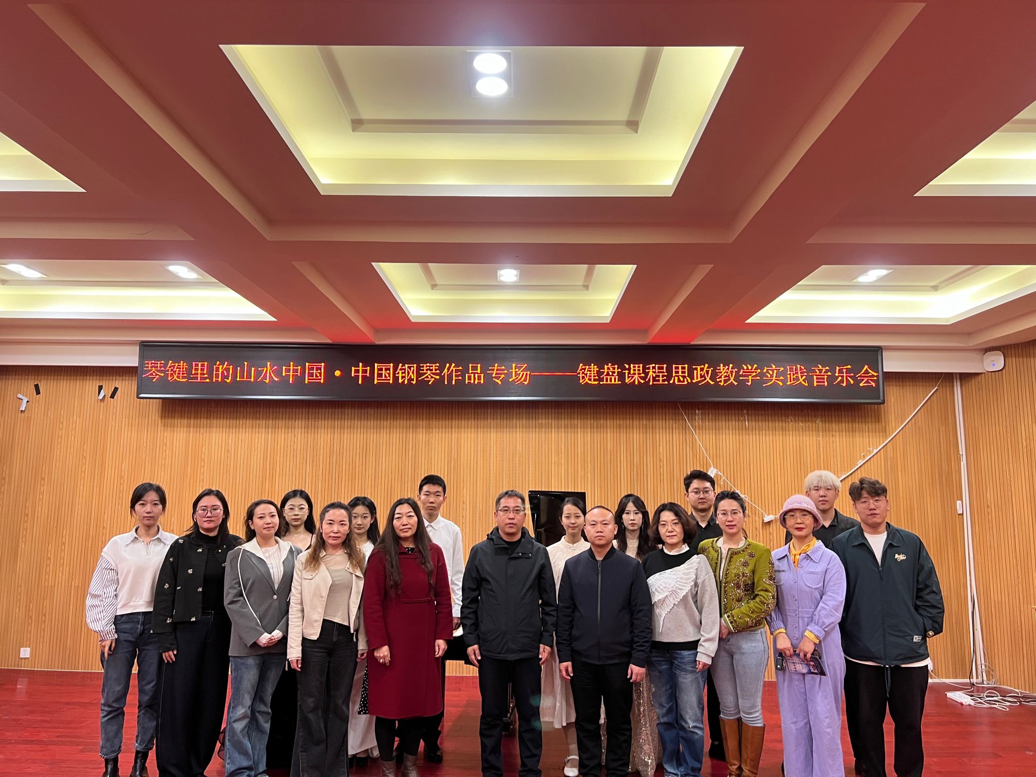 为庆祝中华人民共和国成立75周年,10月17日晚,在多功能音乐厅举办了“‘艺’心向党、琴韵中华”主题键盘课程思政教学实践音乐会暨音乐思政课活动。学院领导班子成员、键盘教研室全体成员、相关师生代表120余人参加了活动。
