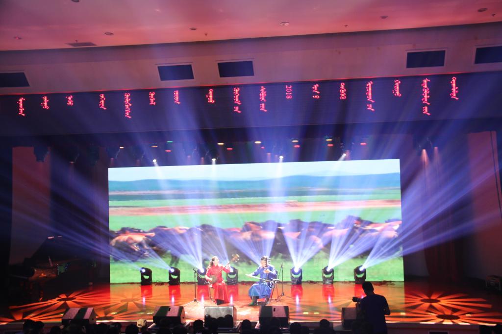 晚会在马头琴齐奏《黑木日》激情演奏中拉开了序幕。整场节目形式多样,精彩纷呈,有男声独唱、女声独唱、古筝独奏、马头琴四重奏、长调、呼麦、民歌、合唱与舞蹈等。晚会最后在群舞《安代》的美妙舞姿中圆满结束。