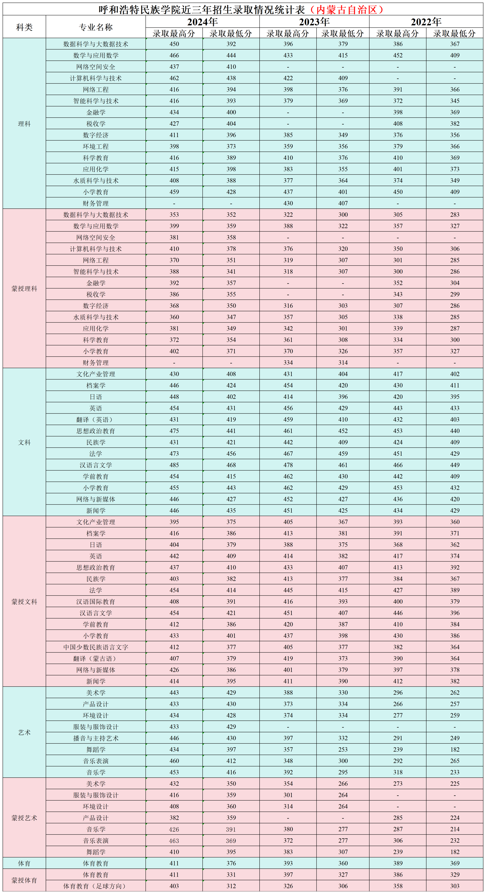 beat365英国官方网站近三年招生录取情况统计表(内蒙古自治区)