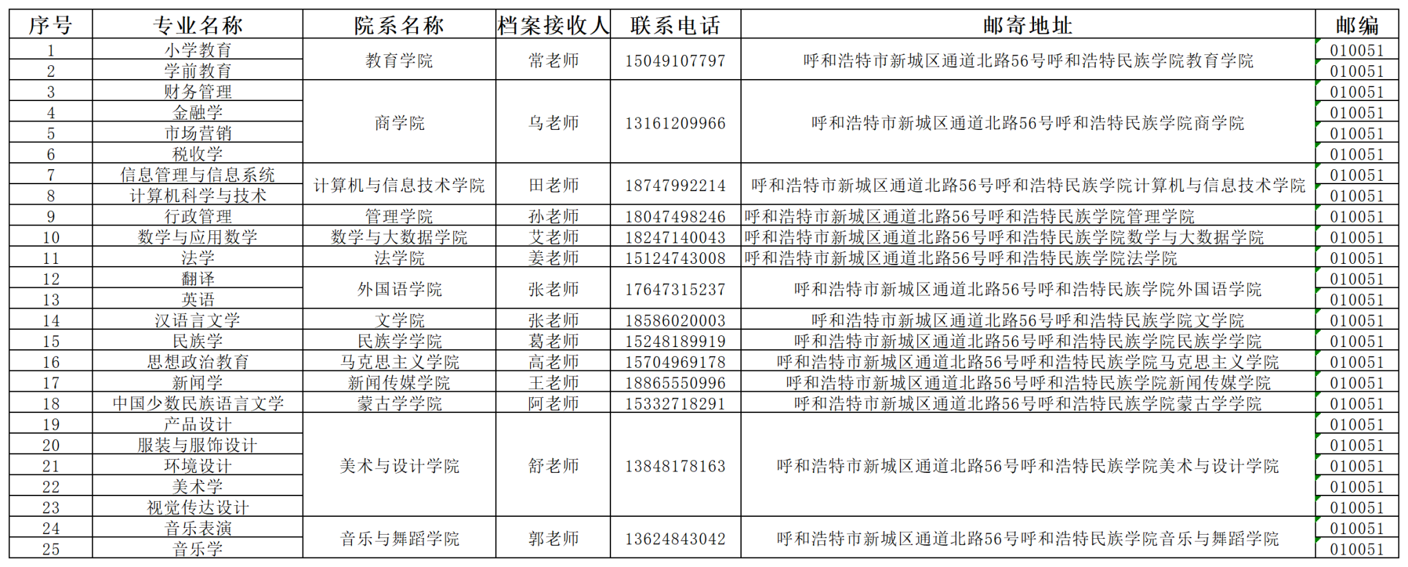 二、beat365官网接收生源院校通过邮政EMS统一邮寄的档案,不接收学生个人邮寄档案,beat365官网档案邮寄请按拟录取本科专业相对应的收件人进行邮寄,具体信息如下: