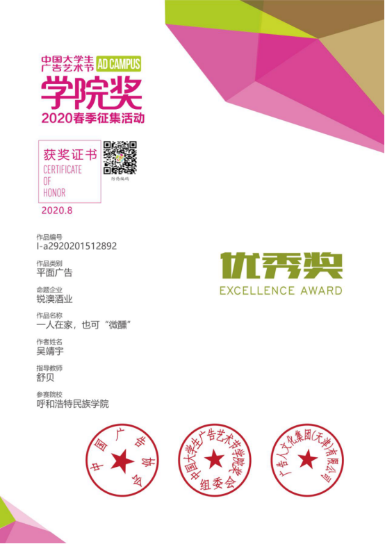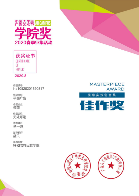 《民族图案在高校美术教育中的应用》发表在锦绣杂志2020年2期。