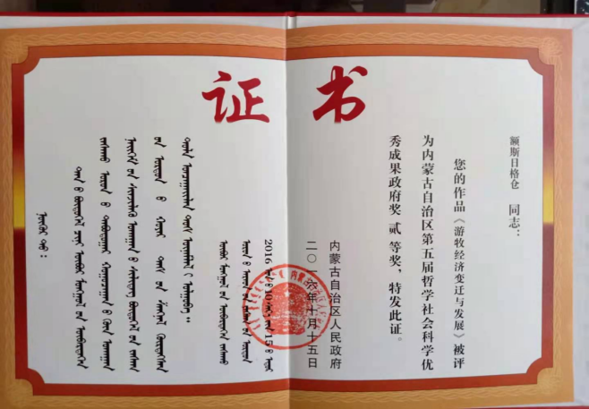 乌苏日格仓教授的专著获得第五届哲学社会科学优秀成果政府二等奖