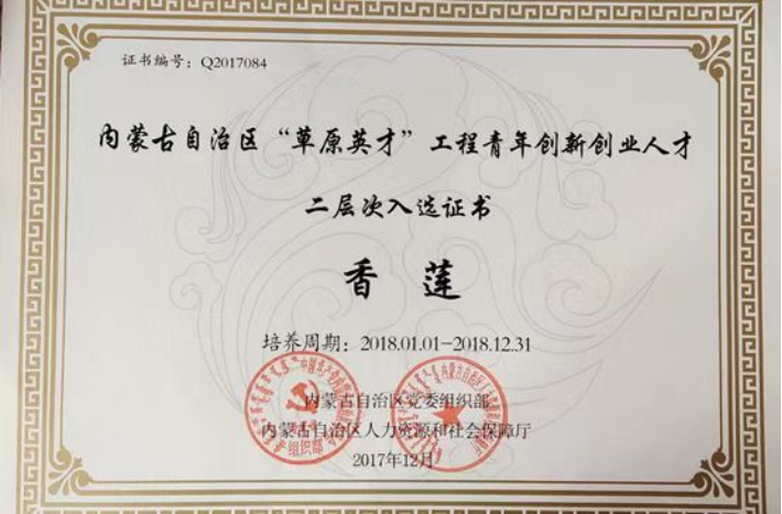 香莲教授获得自治区草原英才创新创业人才称号