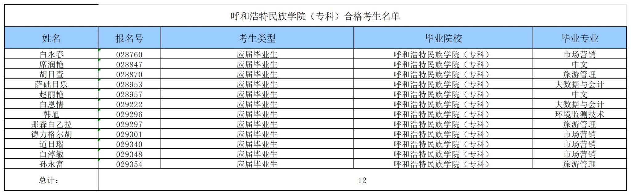 一、合格学生名单