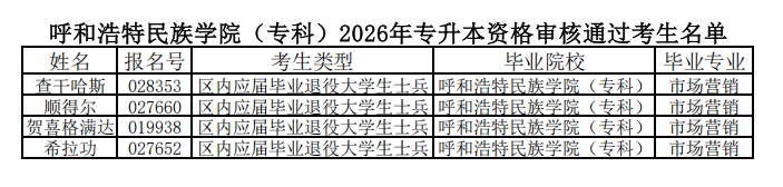 根据自治区教育厅《2026年内蒙古自治区普通高等教育专科升本科考试招生工作方案》(内教学〔2026〕6号)相关规定,beat365官网2026年专升本审核工作已顺利完成。本着“公平、公正、公开”的原则,现将报名合格考生名单予以公示。
