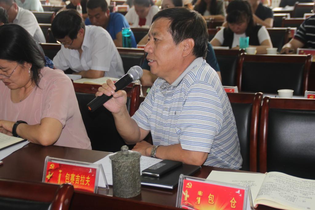 会上,学校党委委员、教务处处长额尔敦布和,学生工作部部长杨福梅,数学与大数据学院副院长王海清,音乐学院党总支副书记、院长齐占柱,教辅党总支书记、对外合作与交流中心主任那日苏,蒙古学学院党总支书记周双喜,统战部副部长高娃,党政办副主任阿如汗,公共管理学院党总支副书记额尔敦格日乐,对外合作与交流中心副主任张海峰,科技处副处长包乌格德勒,文学院党总支副书记包冬梅,化学与环境学院党总支副书记鄂亚彬,学报编辑部主任巴图吉日嘎拉,马克思主义学院党总支书记额斯日格仓,法学院院长包山虎按照学校“思想再解放、笃行新发展理念,推动高质量发展大学习大讨论”工作总体安排,结合本职工作,分别就如何贯彻落实学校第二次党代会精神,如何促进教育教学高质量发展,如何开放办学,如何更好的为学生成长成才服务,如何发挥优势、特色办学,如何提升学术科研水平,如何加强基层党建,如何提升自身综合素质、尽快进入角色等问题作了研讨发言。与会同志围绕发言内容进行了深入探讨交流。