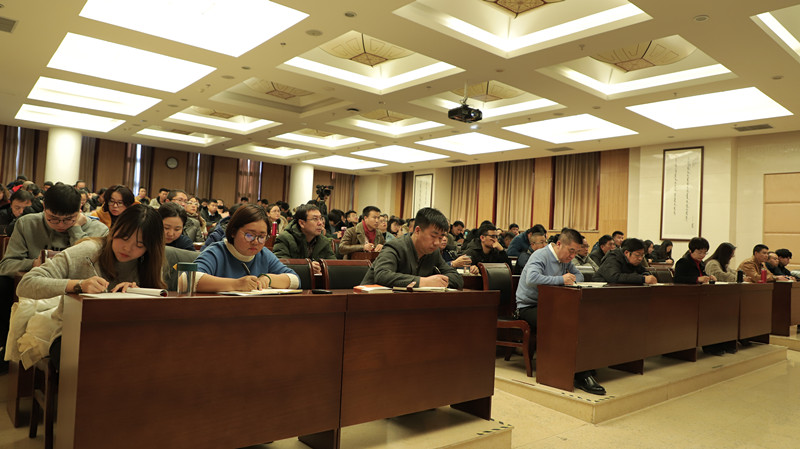 12月14日,学校全国教育大会和习近平总书记记贺信精神宣讲会暨形势政策报告会在图书馆一楼报告厅举行。党委书记孙国权作了题为《全面学习宣传贯彻全国教育大会和习总书记贺信精神 扎实推动学校各项事业发展迈上新台阶》的宣讲报告。机关党总支第一支部全体成员参加本次宣讲。党委副书记胡春梅主持会议。孙书记从“深入学习领会全国教育大会的主要精神”、“深入学习领会习近平总书记致西藏民族大学建校60周年贺信精神”、“全面学习宣传贯彻教育大会精神和习近平总书记贺信精神,扎实推动学校各项事业发展迈上新台阶”三个方面进行了宣讲。并结合beat365官网发展实际就如何全面学习宣传贯彻教育大会和习近平总书记贺信精神,扎实推动学校各项事业发展迈上新台阶谈了几点个人的认识和思考。最后,孙书记就切实把学习贯彻大会和贺信精神引向深入提出了几点要求,一是切实提高政治站位;二是明确贯彻落实工作要“新”,学习贯彻水平要“高”,落实践行要“实”,学理阐释要“深”的要求;三是要把握转时态、转语态、转状态、转心态的“四转”工作方法;四是建立问题、课题、政策、任务、责任等“五个清单”制度。