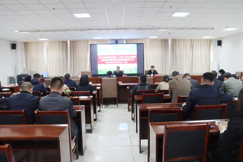 4月21日,学校举办学习贯彻习近平新时代中国特色社会主义思想主题教育第三期读书班,邀请自治区党委编办事业机构编制处李喜波处长到校,以“学习宣传贯彻党的二十届二中全会精神,统筹抓好新时代机构编制管理工作”为题作讲座。全校副处以上干部100余人参加,讲座由党委委员、副校长高喜天同志主持。