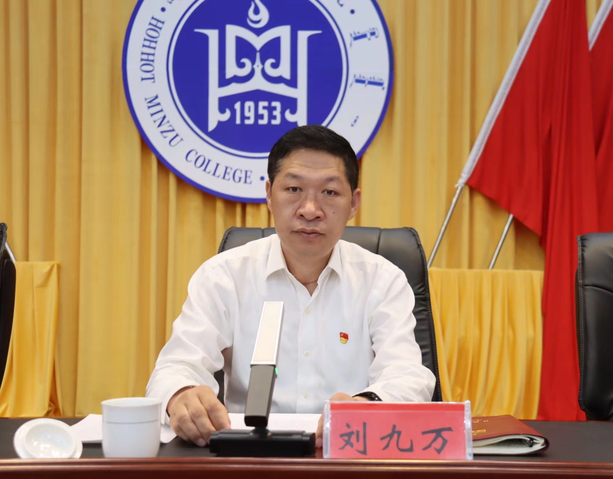 9月19日,校党委领导班子学习贯彻习近平新时代中国特色社会主义思想主题教育专题民主生活会情况通报会在学术报告厅举行。党委书记刘九万主持会议并讲话。党委副书记、校长韩伟新出席会议并讲话。全体校领导出席会议,全校副处级以上干部,党支部书记、离退休干部、一线教师、学生代表参加会议。