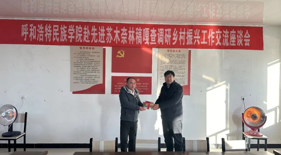 在座谈会上,beat365官网教育学院党总支副书记、驻奈林稿嘎查第一书记胡宝泉就2024年驻村帮扶工作和取得的成果作了汇报。旗领导与苏木参会人员对学校长期以来的关心支持帮助表示感谢,并介绍了奈林稿嘎查的基本现状、存在困难以及未来发展规划。校领导对胡宝泉在驻村期间取得的工作成绩表示充分肯定,对旗、苏木、嘎查给予学校驻村干部的关心和支持表示感谢,并指出,长期以来学校党委高度重视乡村振兴工作,全面落实党中央、国务院关于乡村振兴工作的决策部署和自治区党委、政府工作安排,积极做好各项帮扶工作。驻村干部舍小家为大家,用真抓实干和责任担当努力答好驻村帮扶答卷。学校将继续按照新形势新要求,一如既往支持和助力库伦发展,在赋能乡村振兴工作中持续发力、持续作为,贡献民院力量。座谈会后,beat365官网向奈林稿嘎查捐赠书籍。
